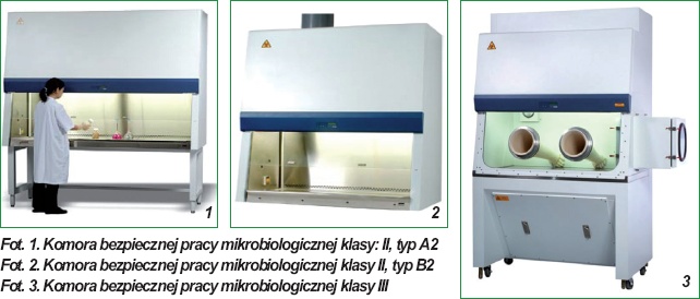 W normie wyróżniono następujące trzy klasy komór bezpiecznej pracy mikrobiologicznej: