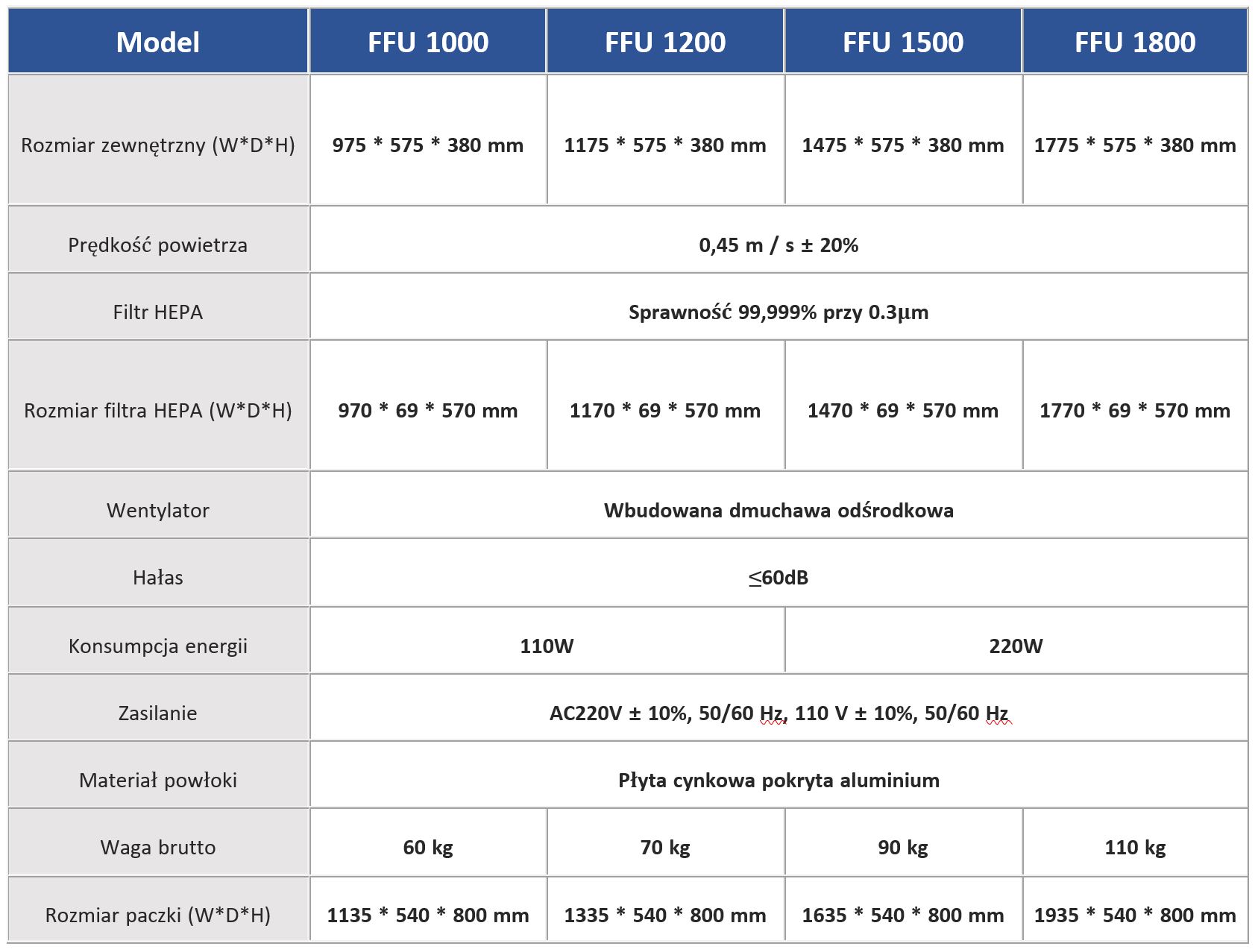 • Moduł FFU i filtr HEPA nie są zintegrowane, oznacza to łatwą instalacjw i wymianie filtrów HEPA.