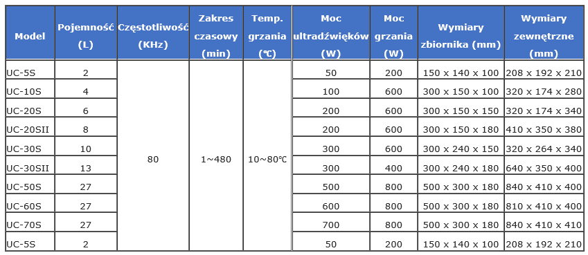 Myjka ultradźwiękowa o pojedynczej częstotliwości 80 KHz Biobase seria UC-S
