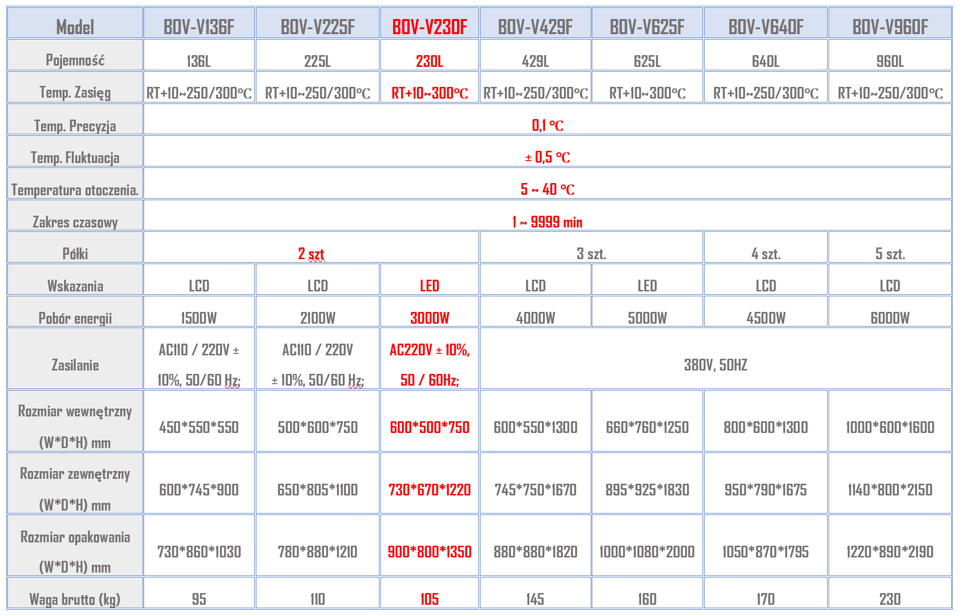 Suszarka w wymuszonym obiegiem powietrza. BOV-V230F