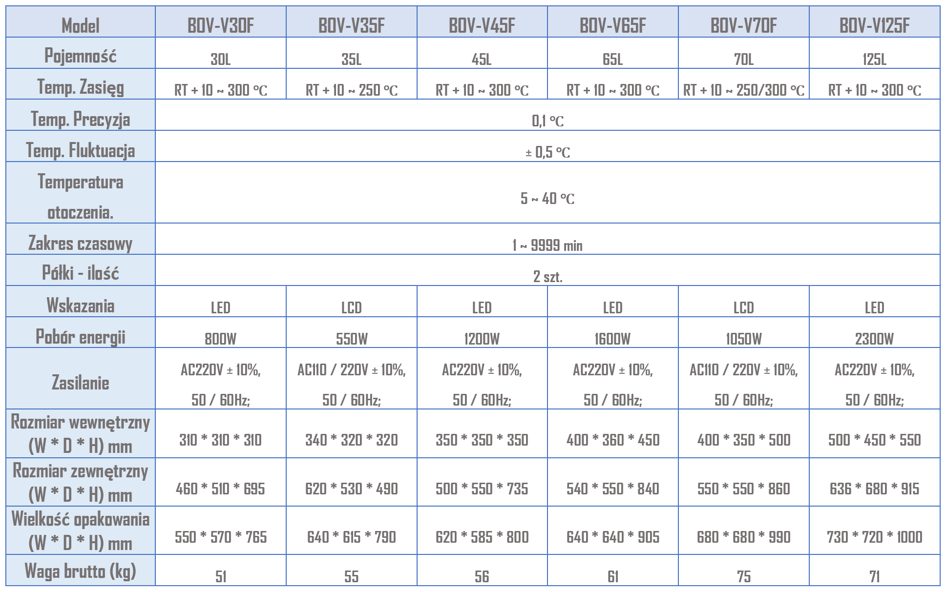 Suszarka z wymuszonym obiegiem powietrza. Seria BOV – V45F